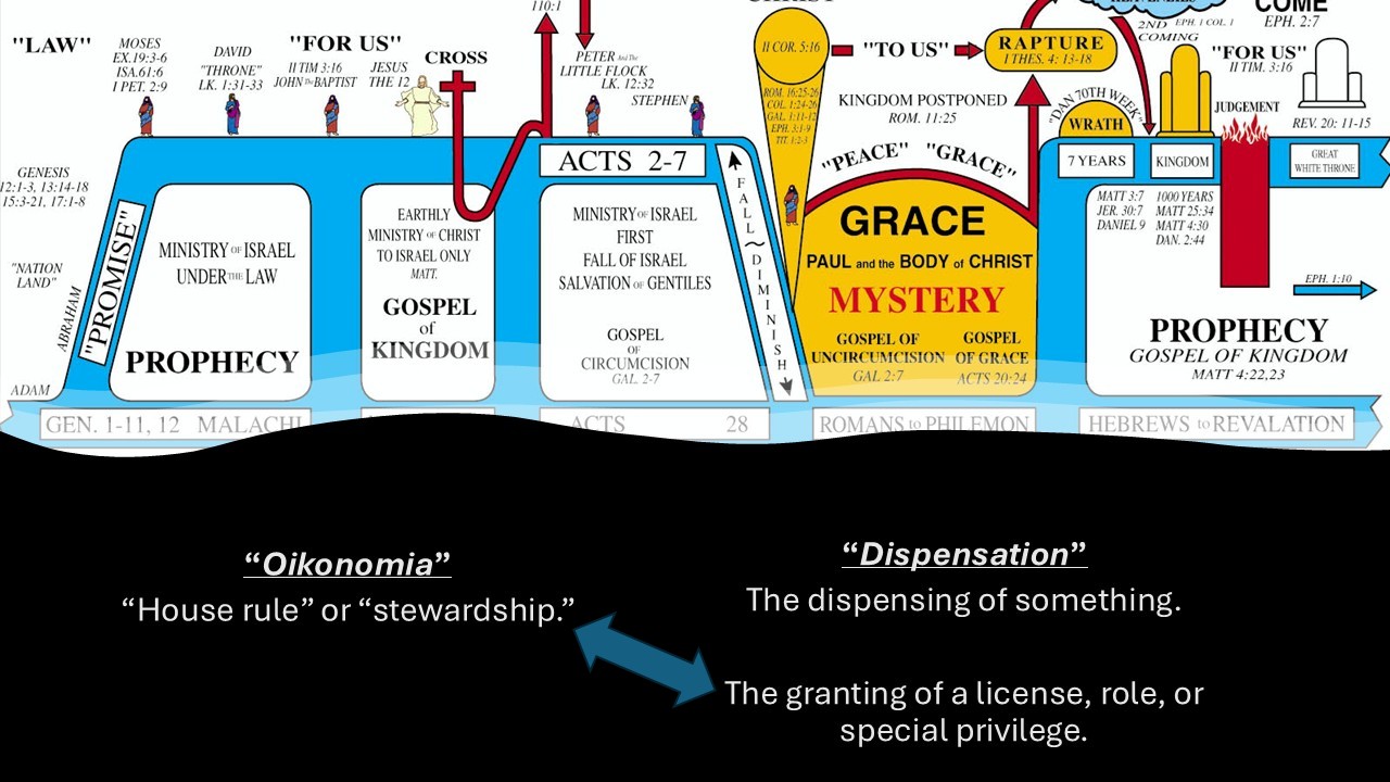 I’ll bet most of our readers know that the Bible word “dispensation” is a translation of the Greek word “oikonomia.” “Oikos” is “house”, and “nomos” is “law or rule”. The combination of these two root words literally translates to the “law of the household” or “household management.”
